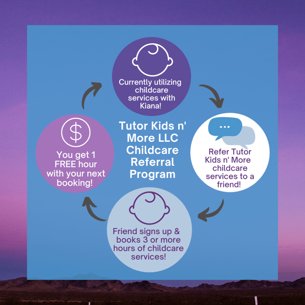 Learn more about the childcare referral program and tutoring service discounts available below!! Please carefully complete and submit the form below to schedule your childcare needs. Kiana looks forward to supporting you! 🙂